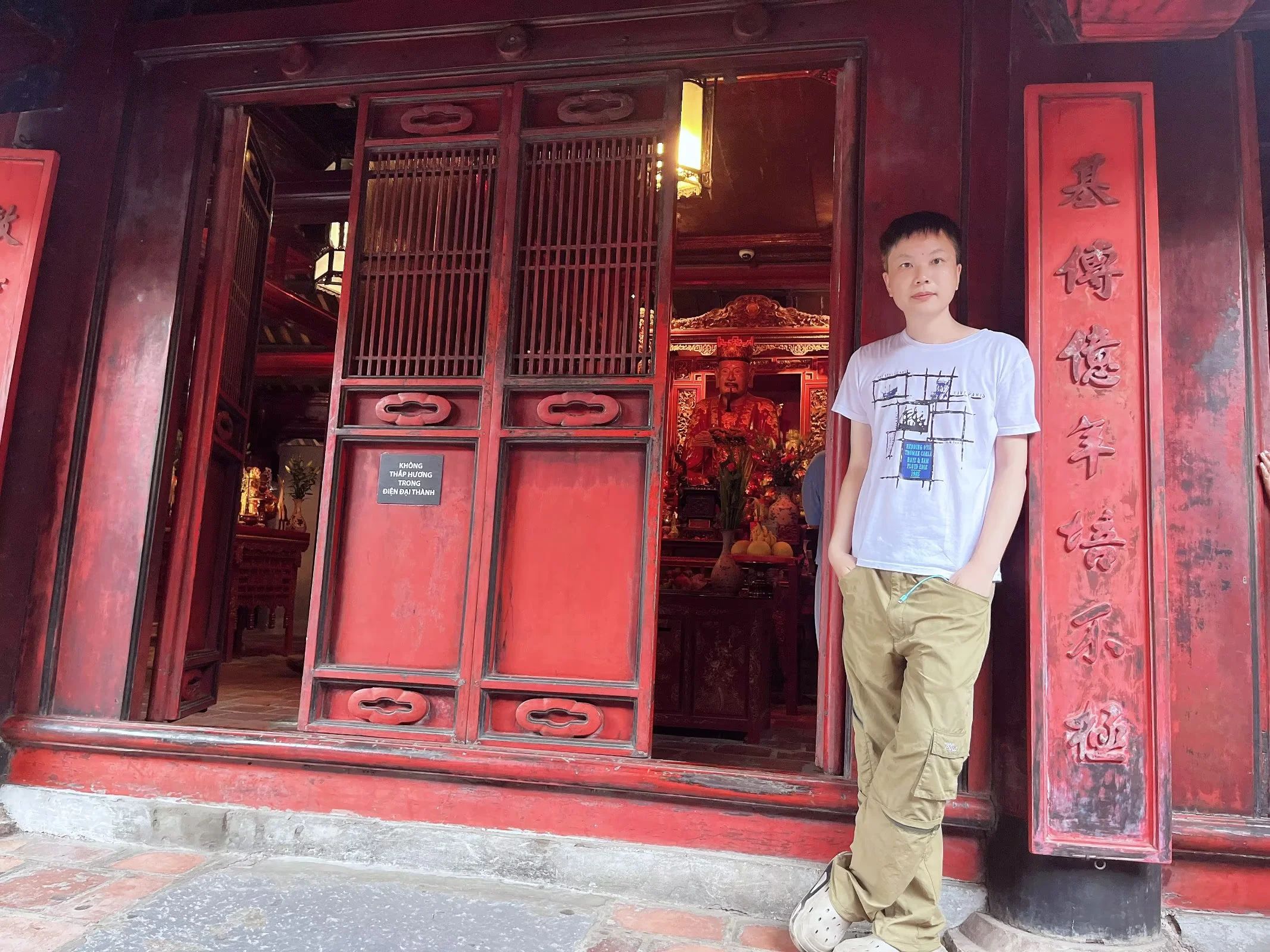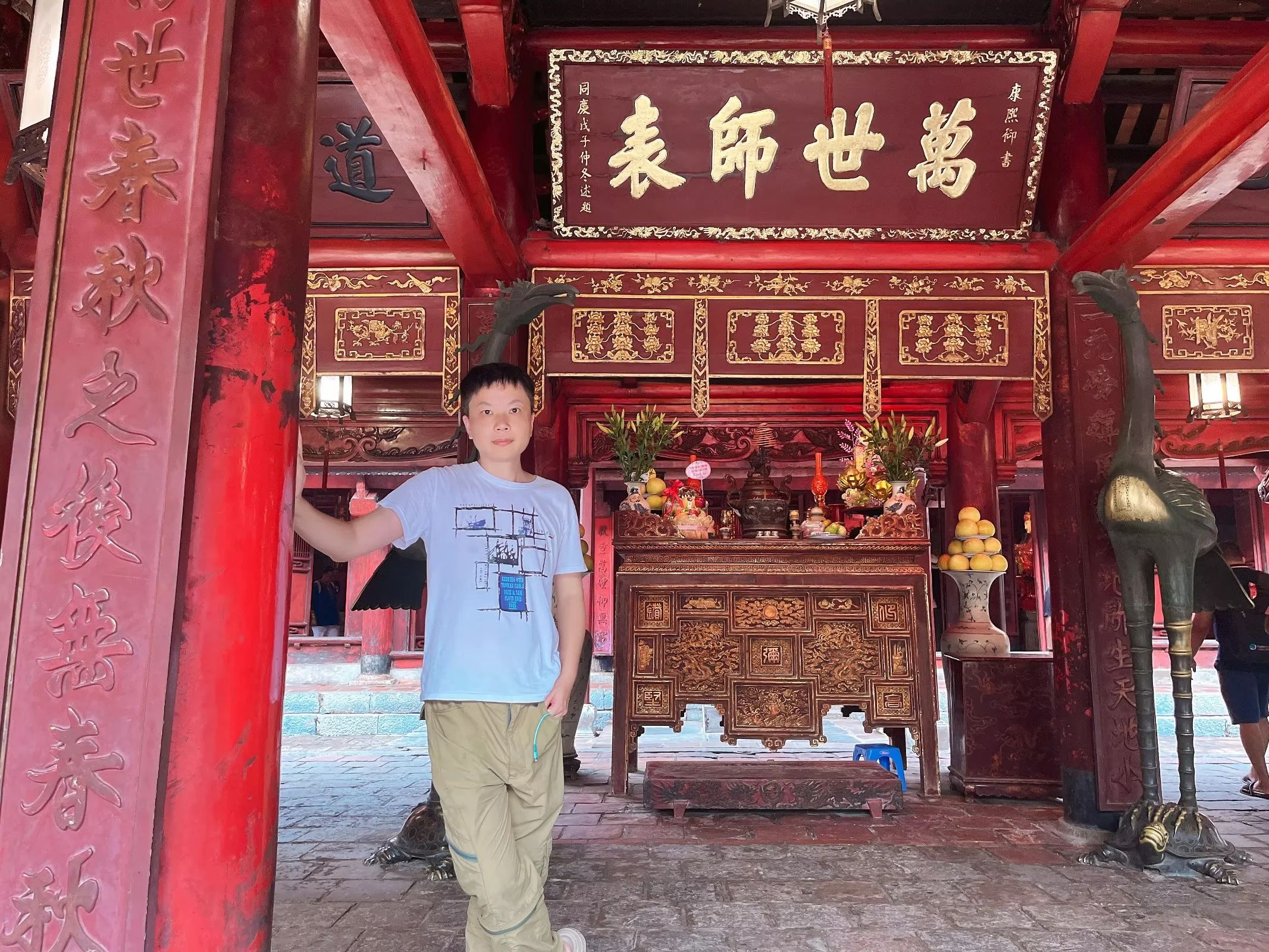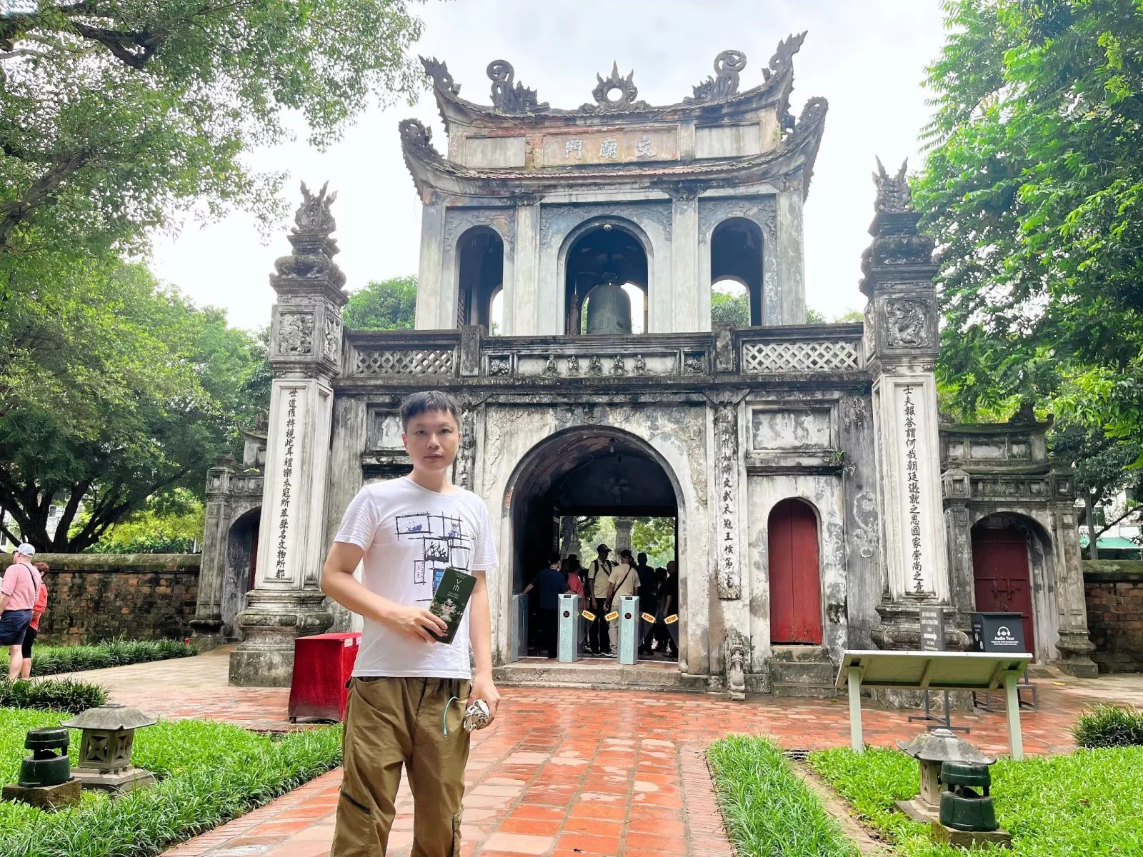 儒释道景——河内 遇上台风赶早回家,今天随缘打卡河内剩下的景点,胡志明还是没看到…… 依次参观真武观、镇国寺、石门教堂、文庙,把儒释道景道场逛了个遍…… 文庙是重头,也是河内的文旅标志地标,古朴大气,是最值得看的景点…… 出口刚好是朋友想吃的店,点了碗鸡肉捞粉,行程结束,坐巴士回南宁…… 回酒店时看见我喜欢的小鸡灯笼布置掉落,感觉就是缘份让我带它回家…… 跟商家沟通了一下,直接送给我了,收获这份中秋节的小幸运,超开心…… 其他相关文章 陆上下龙——宁平 中越边陲——东兴 喧嚣都市——河内 海湾度假——下龙 中越雄关——凭祥 富国岛——万豪