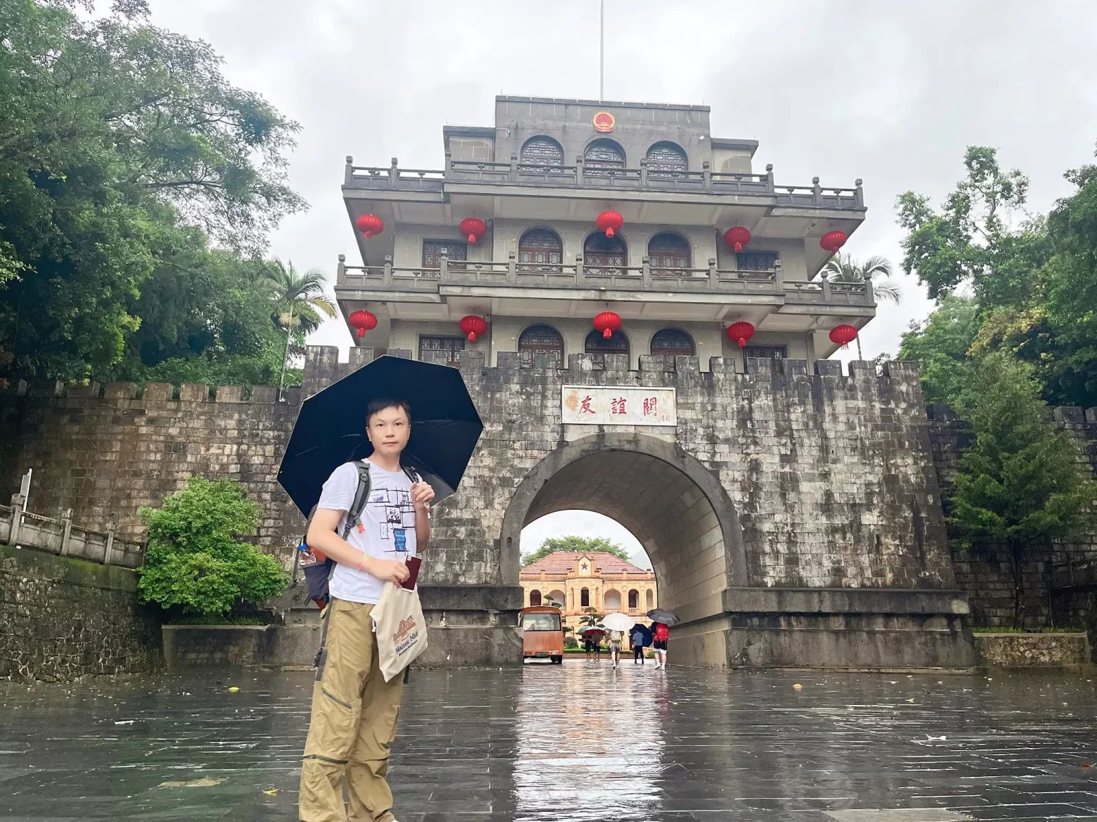 中越雄关——凭祥 最后一天台风来袭,凭祥的交通都停了,只能提前离开,从河内坐直达车到南宁…… 风雨相随,一路驱车前往友谊关,多年前到过中国那边游览参观景区,并未过境…… 这次从越南返国又是另一番景象,可能台风原因,天色昏暗人少萧条,行色匆匆…… 接驳摆渡车到达关口,穿过幽深的大楼连廊才能到达中国,连个路牌指引都没有…… 幸好坐的是直达车,在友谊关门楼下面就有摆渡车接送,不然还要步行出去找车…… 经过三个小时颠波到达南宁的酒店,点了个老友粉,吃完睡个好觉第二天回广州…… 其他相关文章 桂平西山 富国岛——阳东 喧嚣都市——河内 西江归浔--广信塔到梧州 一路一起——德天瀑布 中式相亲